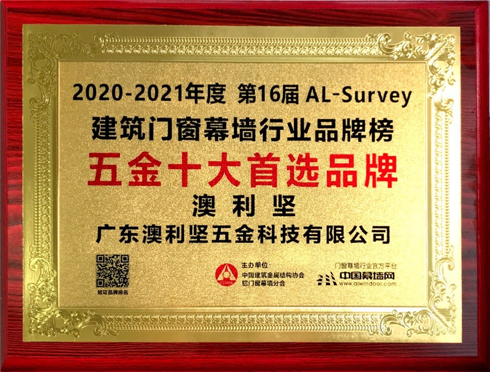 In 2021, fqstone.company awarded the honor of Top Ten Preferred Brands of Hardware in the 16th AL-SURVEY Brand List of Building Doors, Windows and Curtain Wall Industry in 2020-2021 again, which is of great significance to establish the brand image of the company and improve the market competitiveness.