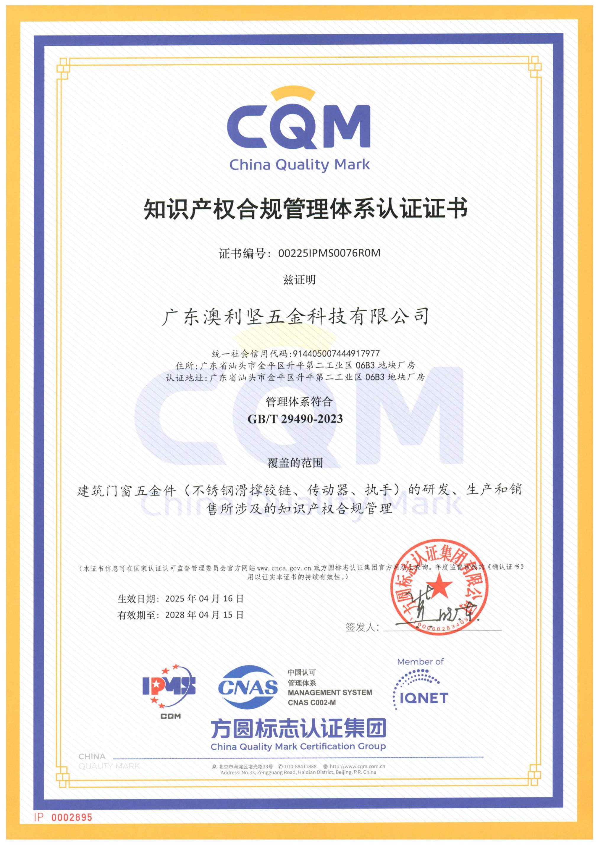 广东省名优高新技术产品-窗用滑撑铰链(FH、HD、CJ200系列) -