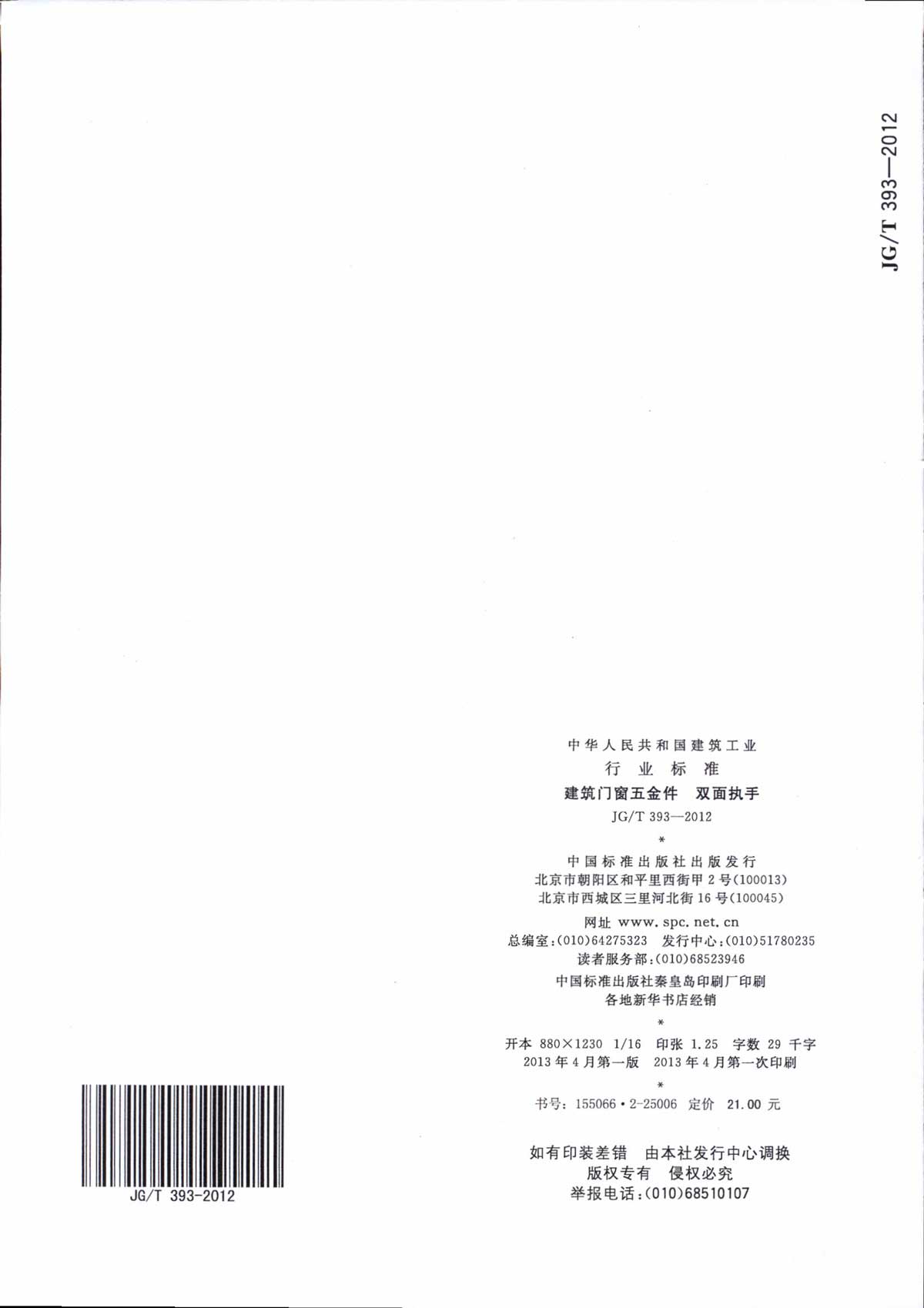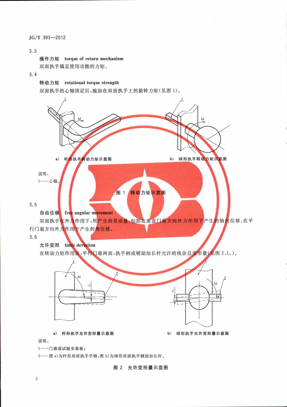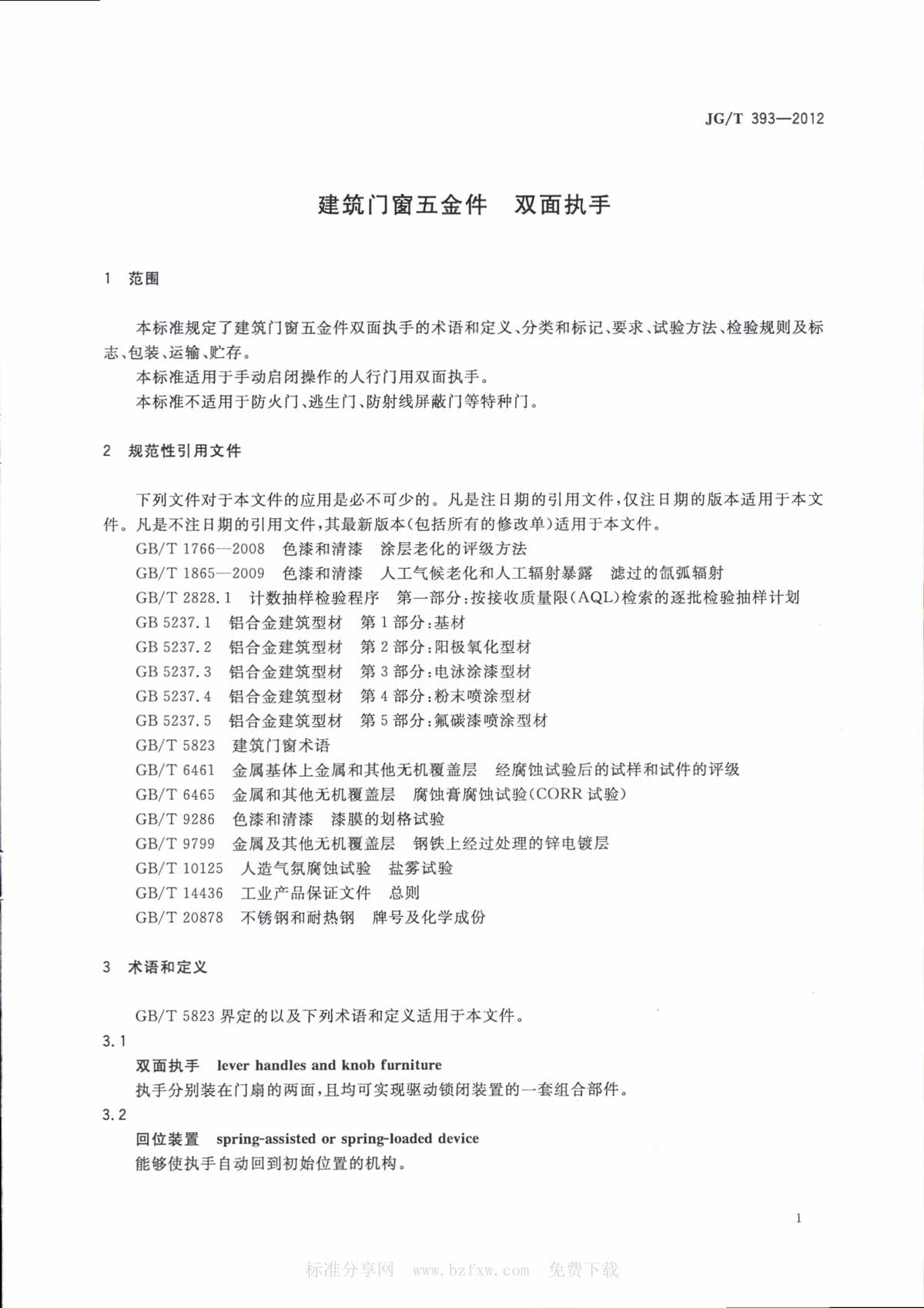 双面执手行业标准 JG/T393-2012