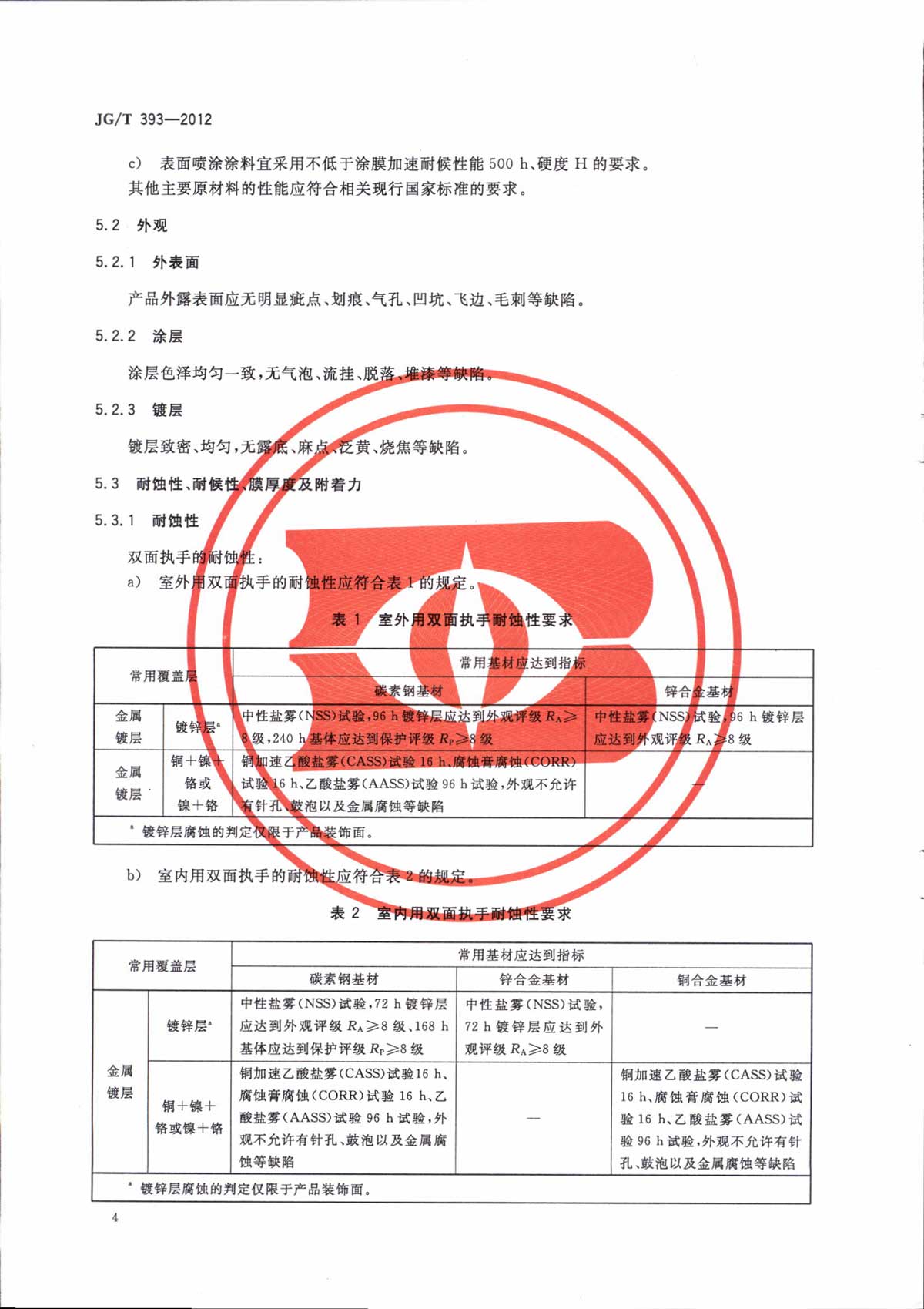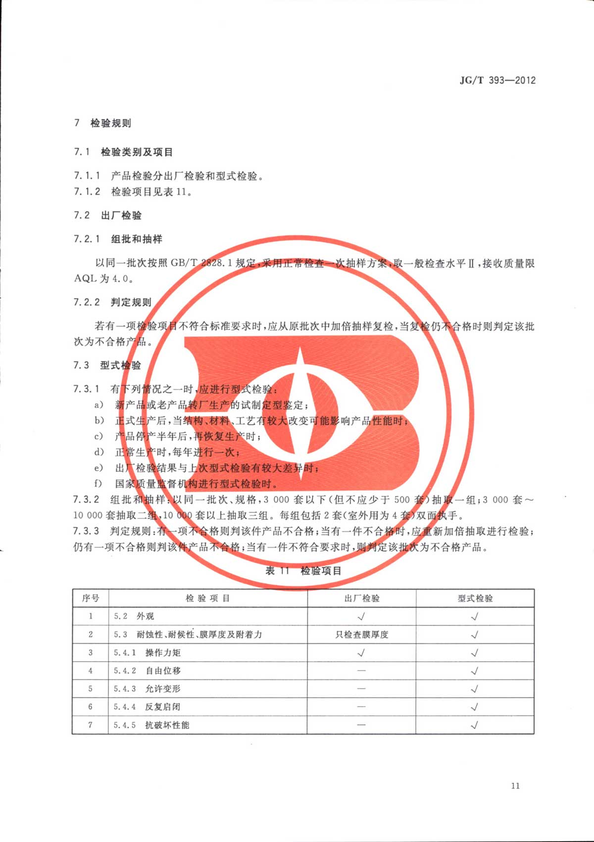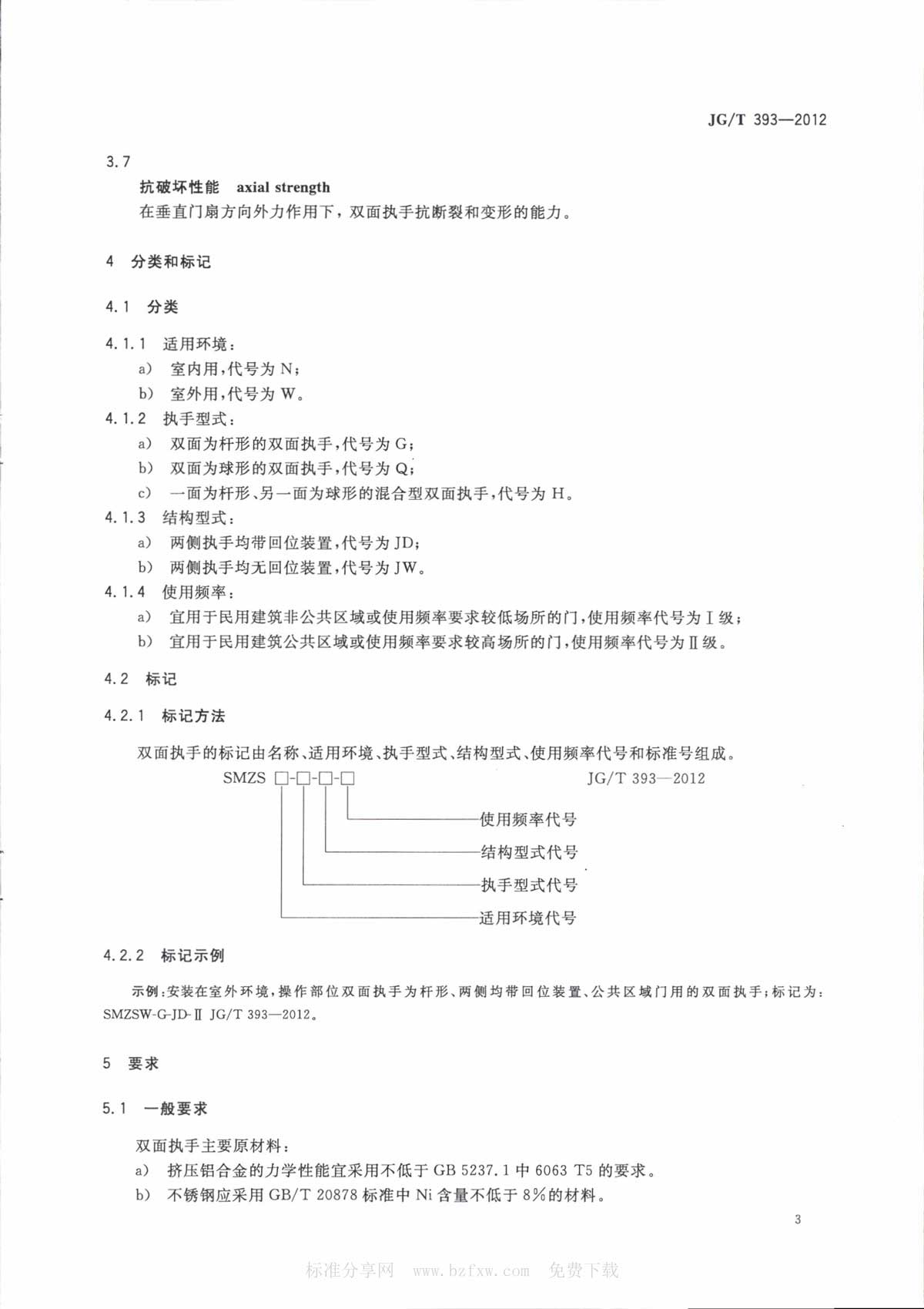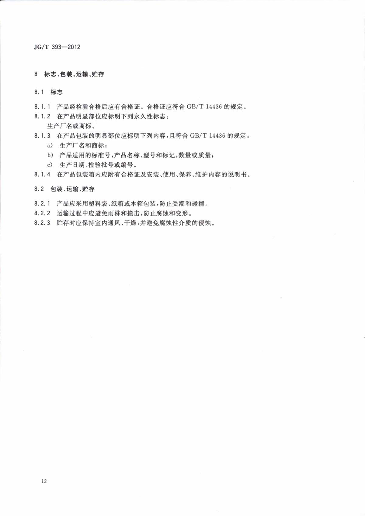 双面执手行业标准 JG/T393-2012